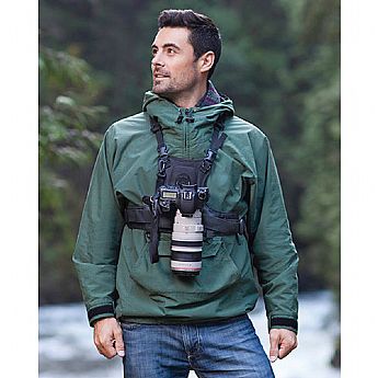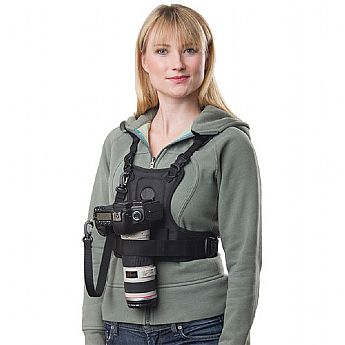 O Colete de Câmera ONLY da Cotton Carrier é um sistema exclusivo de alças para uma câmera que suporta a sua câmera, eliminando a tensão no pescoço geralmente associada com trabalhos fotográficos longos como casamentos, esportes, relações públicas e fotojornalismo. O sistema é projetado para fotógrafos que carregam uma DSLR com grip de bateria. O sistema vem completo com uma alça de câmera que suporta sua câmera com segurança e um cubo em ângulo de 10°. O cubo se prende à rosca para tripé de 1/4 -20 de sua câmera e depois desliza ao receptáculo Lexan na frente do colete. O prato adaptador universal permite que o usuário vá de um receptáculo da Cotton Carrier diretamente ao seu prato de liberação rápida favorito ou cabeça de esfera. Isto porque o cubo angular impede o uso de adaptadores de liberação rápida. O Prato Universal possibilita utilizar as duas funções. Para estabilidade adicional, a alça estabilizadora de lentes incluída adiciona outra medida de equilíbrio e suporte, ao prender a lente firmemente ao seu corpo, prevenindo balanços.