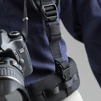 Também é compatível com as correias de suporte de câmera opcionais da Think Tank que acomodam uma ou duas câmeras com lentes. Quando não está sendo usada, dobra facilmente para armazenamento. Tem a garantia permanente da Think Tank contra defeitos de fábrica (apenas nos EUA).