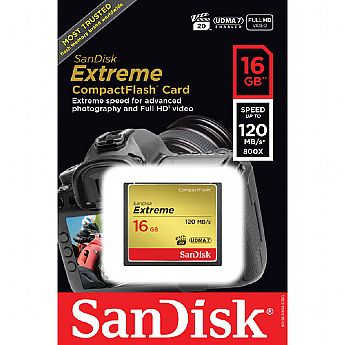 O Cartão de Memória Sandisk Extreme CompactFlash de 16GB fornece captura de vídeo e fotos de maneira rápida e confiável. Esse cartão possui uma velocidade de leitura de até 120MB/s e uma velocidade de gravação de até 60MB/s. Ultra Direct Memory Access 7 (UDMA-7) garante uma performance ótima. Ao ser combinado com uma câmera DSLR compatível com UDMA, esse cartão garante uma captura de foto e vídeo rápida e de alta qualidade.
