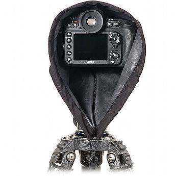 A câmera é alcançada através da abertura traseira da capa, enquanto os controles de lente são acessadas via um fecho de presilha e gancho. Quando não está sendo usada, guarde-a na bolsa de armazenamento incluída. O RainCoat RS é compatível com as Capas de Lente opcionais LensCoat, tampas de lente Hoodie e BodyGuards de câmera. Essa versão vem com um acabamento fosco inteiramente preto para integrar-se melhor ao local desejado. Ou pode ser usada apenas por sua capacidade de proteção.