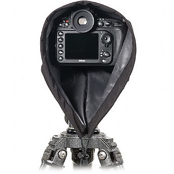 A câmera é alcançada pela abertura traseira da capa, enquanto controles de lente são acessados através de um fecho de gancho e presilha. Quando não está sendo usado, guarde-a na bolsa de armazenamento de rede incluída. A RainCoat RS é compatível com Capas de Lente opcionais da LensCoat, tampas de lente Hoodie e BodyGuards de câmera. Essa versão vem com um acabamento fosco inteiramente preto para integrar-se melhor ao local desejado. Ou pode ser usada apenas por sua capacidade de proteção.