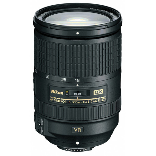 A Lente Nikon AF-S Nikkor DX 18-300mm f/3.5-5.6G ED VR tudo em um possui zoom 16.7x e estabilização de imagem VR II. Trata-se de uma excelente lente multiuso que pode ser usada em qualquer lugar em qualquer assunto. A distância focal 18 - 300mm de longo alcance pode cobrir tudo, desde cenas grande angulares até cenas com zoom de alta potência. Ela fornece o equivalente a 450mm de faixa telefoto e também é excelente para fotos close-up - em uma proximidade de até 1,48 pé do seu assunto a 300mm.