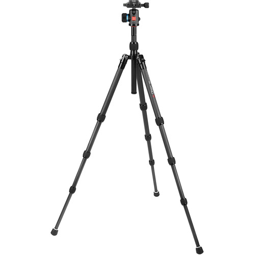 Com as cinco seções de perna e a coluna central estendida, a altura máxima do tripé com a cabeça é de 1,56m. As pernas não giram, o que permite operar as travas por torção em borracha de cada perna com uma só mão: Um giro do pulso e as quatro partes das pernas descem. Cada perna é ajustável de modo independente e pode ser travada com segurança em três ângulos diferentes. Os pés do tripé têm pontas de borracha que podem ser removidas para revelar pontas de metal, permitindo que você fotografe em ambiente interno ou externo em qualquer terreno.