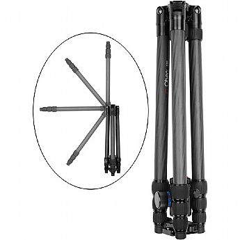 O Tripé em Fibra de Carbono Oben CT-3451 com Cabeça de Esfera BE-113T (Suporta 6kg) é um tripé leve, porém resistente com pernas que se dobram para cima em ângulo de 180° para criar um volume extremamente compacto para o transporte – com a cabeça inclusa acoplada, o comprimento dobrado é de apenas 43,43cm. Para ainda mais versatilidade, uma das pernas pode ser removida do chassi por rosca e fixada à coluna central da cabeça para formar um monopé com altura de trabalho. Com uma capacidade de carga de sistema de 13,2 libras (6kg), o tripé e a cabeça garantem uma base estável para muitas combinações de lente/corpo DSLR.
