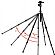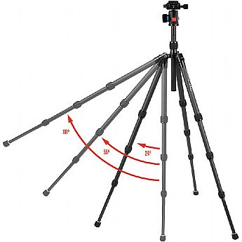 - As pernas podem ser dobradas em até 180° para que a cabeça de esfera fique escondida entre elas. Isso reduz a altura geral do tripé quando fechado.