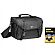 A bolsa de acessórios comporta a câmera, lentes e acessórios. Possui a parte interna acolchoada. O case é transportado por uma alça de mão acolchoada, ou por uma alça de ombro ajustável com pad.