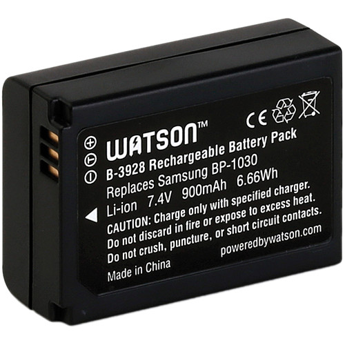 A Bateria Watson BP-1030 de Íons de Lítio para Câmeras Samsung (7,4V, 900mAh) funciona com as mesmas câmeras que a Samsung BP-1030. Esta bateria de reposição apresenta uma capacidade de 900mAh, 7,4V de potência de saída, e 6,66 watts/hora. Pequenas e leves, as baterias de íons de lítio podem ser recarregadas e descarregadas a qualquer momento sem desenvolver o efeito memória.
