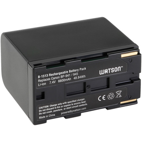 A Bateria Watson BP-945 de Íons de Lítio para Câmeras Canon (7.4V, 6600mAh) é compatível com as mesmas câmeras que a Canon BP-945. Esta bateria de reposição possui capacidade de 6600mAh, 7,4V de saída e 48.84 W/h. Pequenas e leves, as baterias de íons de lítio podem ser carregadas e descarregadas a qualquer momento sem desenvolver o efeito memória.
