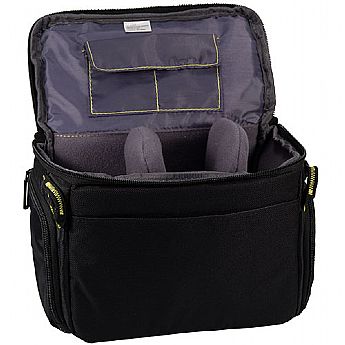 A bolsa é fabricada em fabricada em Nylon 600 Extra Durável e possui zíper reforçado. Ela tem duas divisões internas acolchoada ajustáveis, além de dois bolsos internos com velcro para pequenos acessórios como cartões de memória ou baterias. Ela também possui dois bolsos laterais com zíper para carregar celular, pilhas e outros trecos. Ainda, a bolsa tem mais dois bolsos com velcro, um bolso dianteito e um bolso traseiro.