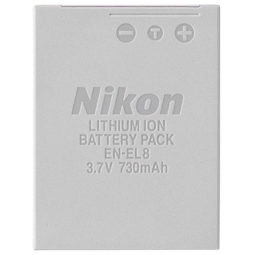 A bateria de Íons de Lítio recarregável de alta capacidade Nikon EN-EL8 opera com a câmera digital Nikon Coolpix P1, P2, S1, S2 e S3. Ela possui tecnologia de Lítio, que garante o máximo de vida de bateria e o máximo de potência. Ela também não apresenta Efeito Memória, o que permite recarregar baterias parcialmente esgotadas sem comprometer a performance.