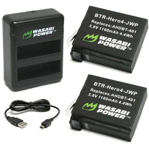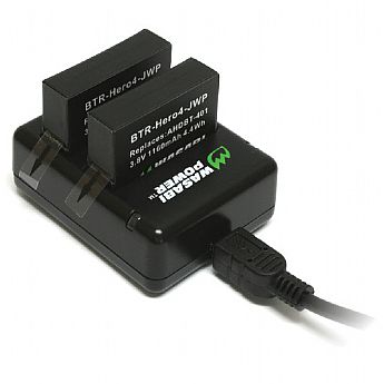 O Carregador Duplo com Duas Baterias Wasabi Power para GoPro HERO4 com Cabo USB e Duas Baterias para GoPro HERO4 permite que você continue capturando com duas baterias sobressalentes carregadas e prontas para usar. Ele é alimentado por fontes USB com o cabo incluso e possui dois slots para a carga simultânea de baterias GoPro HERO4. Luzes indicadoras LED exibem o status da carga para que você saiba quando as suas baterias estão prontas para a ação. O carregador inclui duas baterias sobressalentes HERO4 de íons de lítio e 1160mAh.