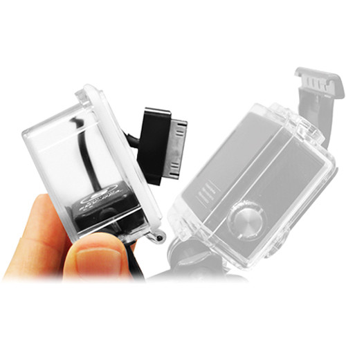 O Cabo USB Eliminador de Bateria com Porta Traseira Switronix DV-GP4-USBC para Câmeras GoPro Hero4 (cabo de 3m) é um cabo de extensão de energia que permite alimentar a sua GoPro HERO4 a partir de uma fonte de energia USB. Ele vem com uma porta traseira clara que se anexa à parte de trás da caixa padrão da câmera e fornece resistência a chuva e respingoa (mas não é submersível). A porta traseira não impede a visibilidade do LCD do HERO4 Silver Edition.