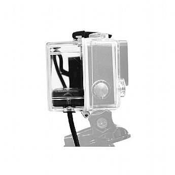 O bloqueio do cabo no conector USB na parte traseira da câmera, em vez de à porta USB da câmera, prevê uma conexão mais confiável, altamente benéfica em aplicações de alto impacto. Outro benefício desta solução de energia é que nenhum calor é gerado, uma vez que o que está sendo utilizado é simplesmente um cabo e não uma bateria, e isso reduz a chance de superaquecimento da câmera. O cabo tem 3 metros de comprimento.