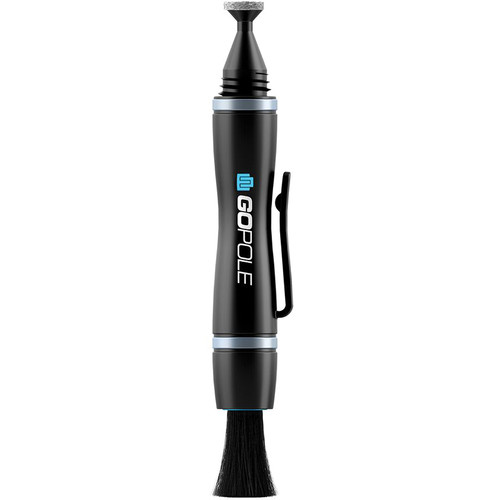 O Limpador de Lente Compacto GoPole Lenspen para GoPro HERO é um limpador de lente estilo caneta com tamanho para a porta de lente em miniatura encontrada em câmeras de ação como a GoPro HERO. Uma ponta de camurça possui um composto de limpeza que opera para remover impressões digitais, manchas de água e outras manchas. Quaisquer partículas livres que permaneçam presas na lente podem ser limpas usando o pincel retrátil ultramacio do outro lado.