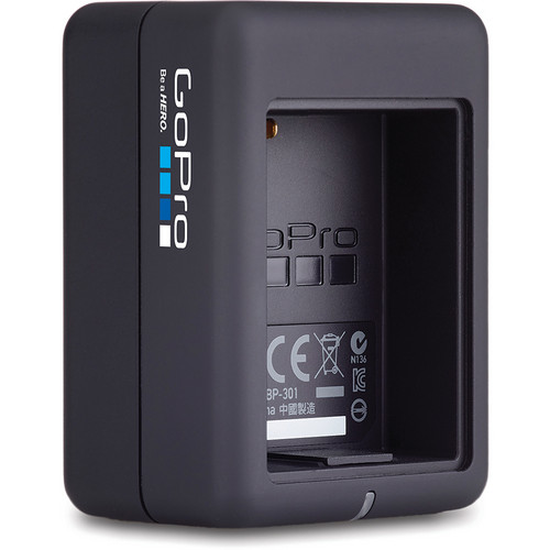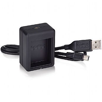 O Carregador de Bateria GoPro USB Duplo para Baterias da GoPro HERO3 e HERO3+ é um carregador USB que suporta duas baterias e as carrega simultaneamente. Ele é projetado para utilizar a energia de barramentos USB da maioria das fontes de energia USB, incluindo adaptadores de tomada USB, computadores, o Carregador de Carro GoPro e o Carregador de Tomada GoPro. Duas luzes LED indicam o status de carga de cada bateria.