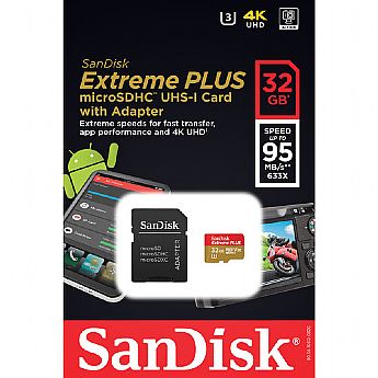 O Cartão de Memória Sandisk microSDHC de 32GB Extreme Plus UHS-I Classe 10 com Adaptador de microSD possui velocidades máximas de leitura e gravação de 95MB/s e 90MB/s, respectivamente. Essas taxas de dados permitem captura contínua rápida e suave, gravação de vídeo Full HD 1080p e 4K Ultra HD e transferências do cartão para o computador. Um cartão durável, ele pode suportar até 72 horas em água doce ou salgada e até 500Gs de impactos, além de ser à prova de raios X. O software de recuperação de dados RescuePro Deluxe passível de download permite recuperar imagens acidentalmente apagadas. O adaptador microSD fornecido permite que você use esse cartão em slots SD de tamanho padrão. O cartão possui garantia limitada permanente nos EUA e em muitas outras regiões do mundo e uma garantia de 30 anos na Alemanha, Canadá e regiões que não reconhecem garantias permanentes.