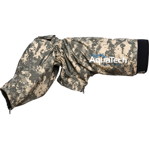 A Capa de Chuva Sport Shield AquaTech SS-300 (camuflagem digital/digi camo) foi projetada principalmente para câmeras SLR de filme ou digitais Nikon ou Canon, com lentes de até 15 x 6 polegadas (38,1 x 15,24cm) conectadas. Ele é feita de tecido respirável de alta qualidade, com 3 camadas, à prova d'água, com costuras seladas com vedação de silicone à prova d'água ao redor das janelas de visualização. Ela é feita com zíperes à prova d'água para facilidade de inserção e remoção. A capa de chuva oferece uma vedação resistente à água em torno da parte frontal da lente. O design de uma peça oferece vedação total e proteção contra unidade para o corpo da câmera e a lente, encaixando "como uma luva". Ela foi projetada com abertura à prova d'água para que se possa acessar e operar os controles de câmera com facilidade e segurança.