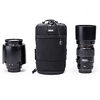 O Trocador de Lente possui uma ampla abertura para fácil manuseio de sua lente e é segura por seu fechamento por cordão de amarrar com uma mão. Também possui um acesso superior por cordão elástico. Para máxima flexibilidade, ela irá se prender em qualquer cinto ou pack de cinto opcional Think Tank. A bolsa é feita de nylon acolchoado e fornece excelente proteção para suas valiosas óticas e é auxiliada por uma capa de chuva removível para quando você for pego pela chuva ou neve.