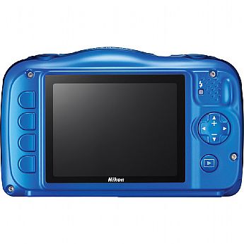 Leve a câmera Câmera Digital Nikon COOLPIX S33 13.2MPixel à Prova D'água até 10m (Azul) para a praia, piscina, esqui, ou qualquer outro tipo de aventura em família sem se preocupar devido à impermeabilização até 10m, e impactos até 1,5m, e congelamento até -10º. Fotografias e vídeo de qualidade é a chave com um sensor CMOS de 13,2 megapixels e uma lente NIKKOR com zoom óptico 3x 4.1-12.3mm f/3.9-5.9 que é equivalente a 30-90mm no formato 35mm. Esta combinação irá fornecer imagens de alta resolução com baixo nível de ruído, bem como de vídeo 1080p Full HD com som estéreo em até 30 fps. Além disso, uma função de Zoom de 6x dinâmico vai efetivamente dobrar seu comprimento focal.
