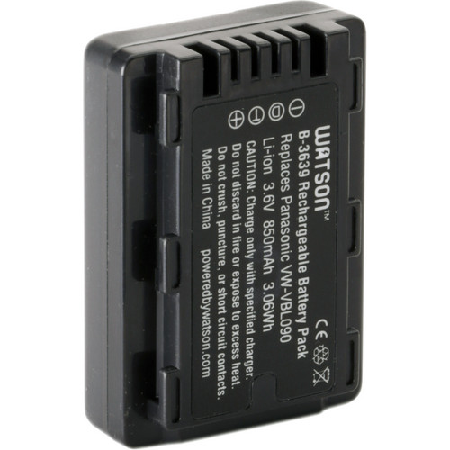 A Bateria de Íons de Lítio VW-VBL090 da Watson é compatível com as mesmas câmeras que a Panasonic VW-VBL090. Esta bateria de reposição possui capacidade de 850mAh, 3,6V de saída. Pequenas e leves, as baterias de íons de lítio podem ser carregadas e descarregadas a qualquer momento sem desenvolver o efeito memória.