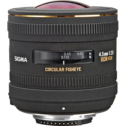 A Lente Sigma 4.5mm f/2.8 EX DC HSM para Câmeras Nikon é uma lente olho de peixe esférica que captura com facilidade uma visão total de 180° em todas as direções, em uma imagem circular. Até mesmo assuntos familiares e mundanos podem ser retratados com expressões novas através de perspectivas exageradas e efeitos de distorção incomuns. Ela é adequada para medidas técnicas e acadêmicas, como medidas de ângulo sólido, medições em "cloud cover" e realidade virtual.