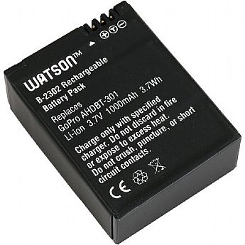 A Bateria de Íons de Lítio Watson para HERO3 funciona com a mesma câmera que a GoPro AHDBT-301. Esse pack de bateria de reposição possui uma capacidade de saída de 1000mAh e 3,7V de alimentação de saída. Compactas e leves, as baterias de Íons de Lítio podem ser carregadas ou descarregadas a qualquer hora, sem desenvolver o efeito memória.